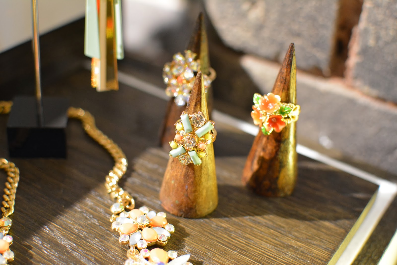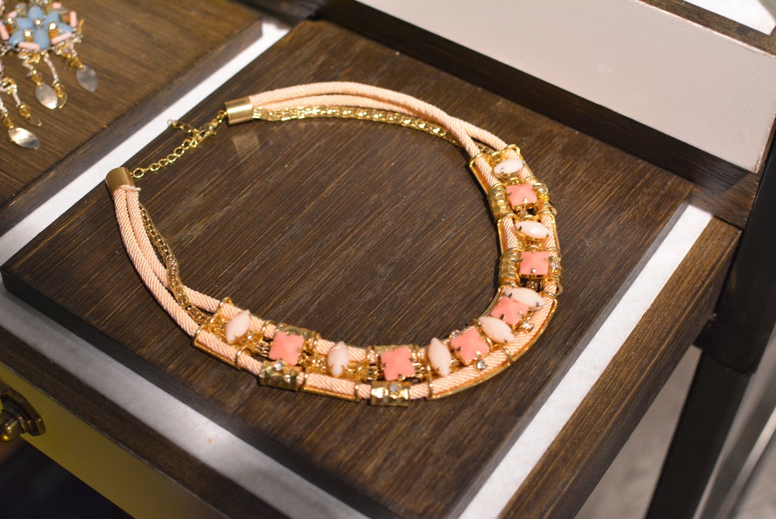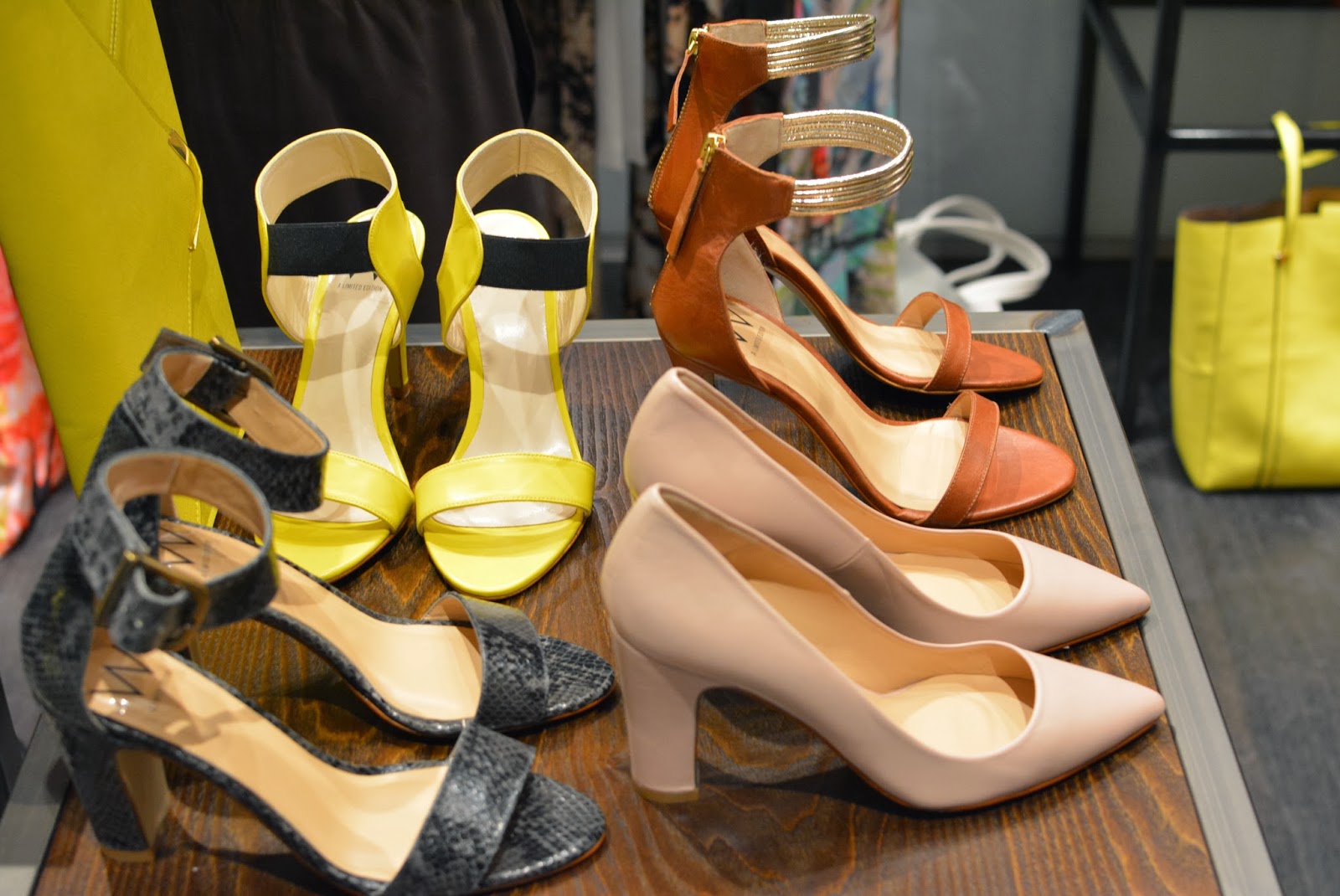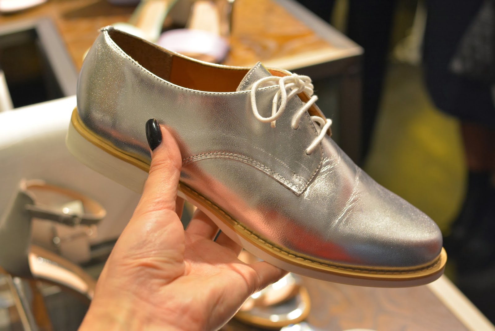 At Topshop I saw plenty of tribal inspired jewellery with some primary colours thrown in for good measure. You can never go wrong with Freedom jewellery, statement necklaces a-plenty here! I spotted some new colours of the famed ‘Gwenda’ suede court shoes, which have to be my favourite shoe of all time, although each season they change the name, the shape remains the same, and for a high street shoe, they are so comfortable. All three new colours are for sure on my ‘I want it or i’ll just die’ list! The Celine-esque pony slides wouldn’t normally have been my style, but as I, ummmm…’mature’ I’m finding that my taste is evolving and I’m falling for styles like that, with simple clean lines, very chic and minimal. I think for brave London fashionistas those will go down very well. On the rails I noticed lots of tropical prints and some very ethnic inspired pieces which will be sure fire hits come festival season, this was also reflected in the accessories with boho style duffle bags. As a contrast to that on the second rail (which was more ‘me’) there were some simple elegant styles including a raw edge pink trench style coat (Yes…another pink coat) which was made from the most fascinating of fabrics, I felt like it could be a neoprene backed crepe, but I can’t be sure, either way it was a beaut! There was a touch of this season’s pvc and some pastel coloured leather, but what I zoomed in on was the watercolour floral prints in matching sets (Hinting towards Acne inspo), uh-maaaaaaaazeballs!