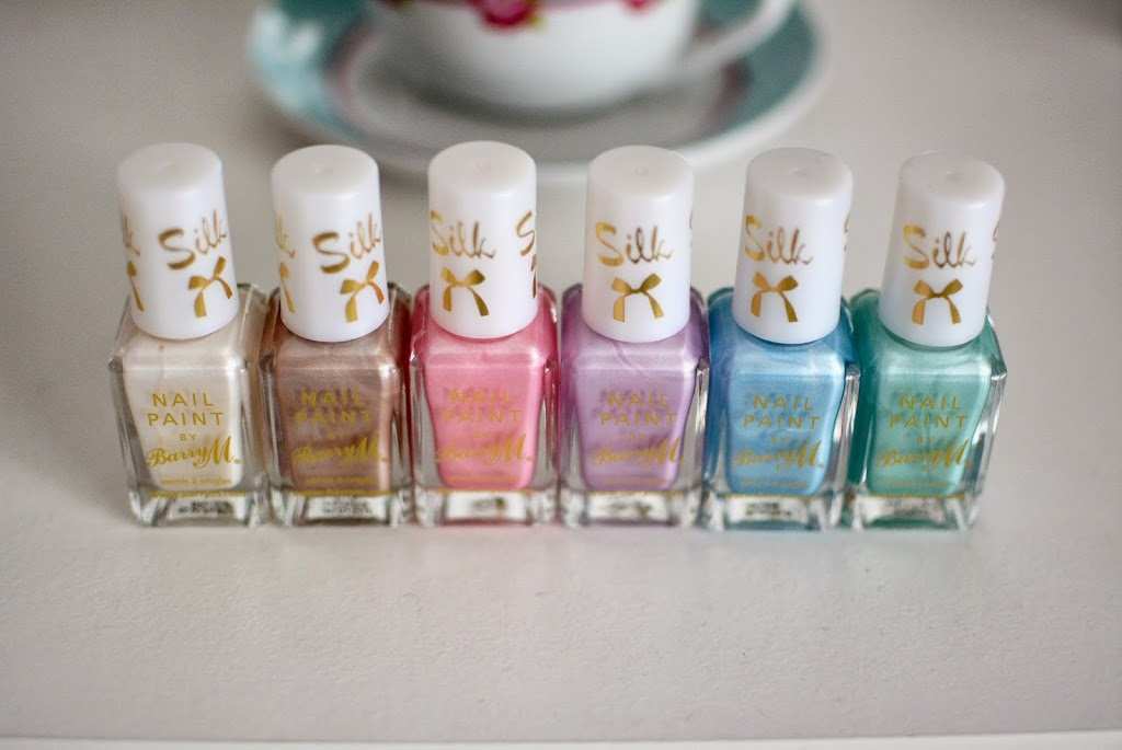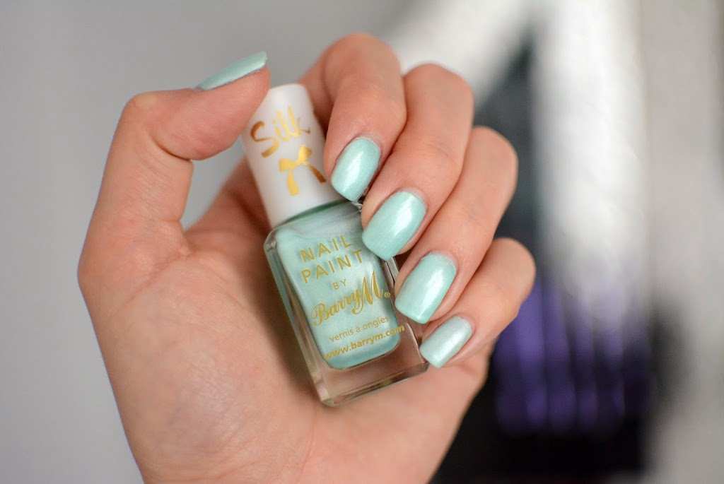 Barry M ‘Silk’ polishes. There are 6 shades in this range, all perfect for Spring/Summer. The ‘Silk’ name comes from the soft pearlescent finish on the polishes which gives them a silk effect look when dry. I applied 2 coats of each of the colours (swatched below) and that did the trick to get the opaque look with no streaks. My favourite colours are ‘Mist’ (Icey Blue) and ‘Meadow’ (Minty Green) but in all honesty all the colours are lovely and I love this silky finish. They are priced at £3.99 each.
