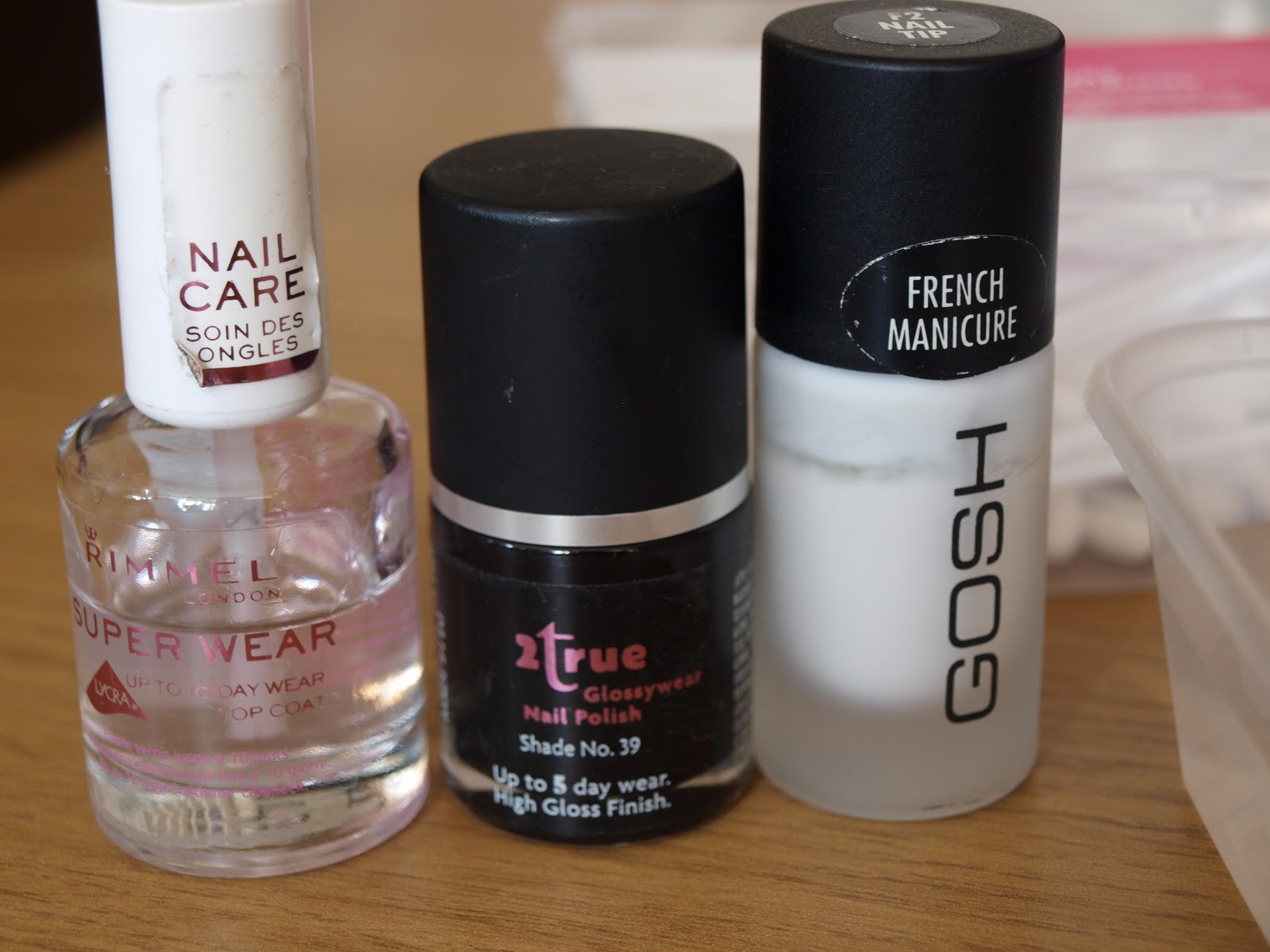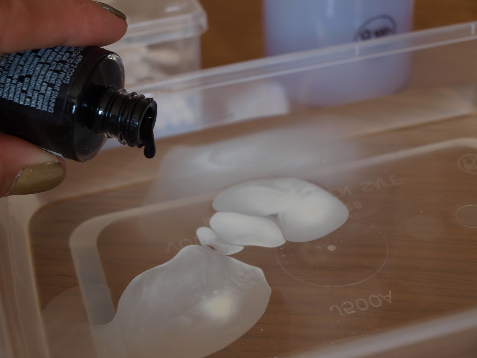 Using your chosen nail colours. Pour them onto the surface of the water. Just a few small blobs will do, as the colour will spread out across the surface of the water when it makes contact.