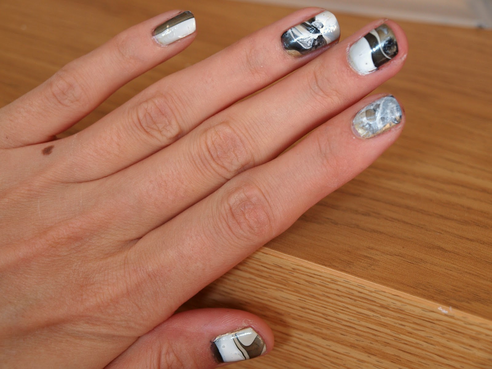 Step 4: Use your nail varnish remover and cotton buds to wipe away the excess colour which is no doubt all over your fingers, and there you have it…Marbled nails ♥