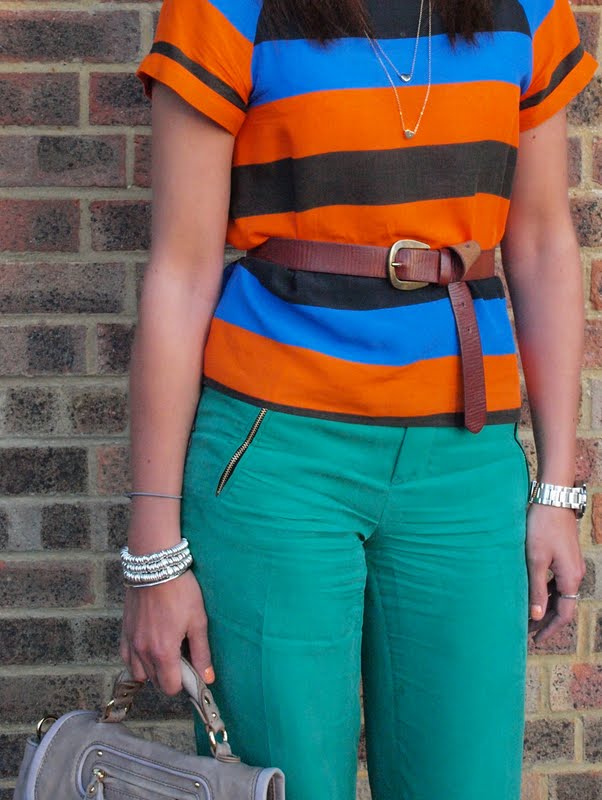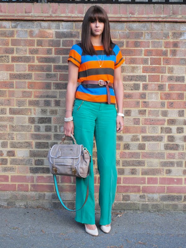 Trousers: Zara. Top: Zara. Belt: H&M. Shoes: New Look. Necklace: Claires Accessories. Bracelets: Links of London. Watch: Guess. Bag: Juicy Couture.